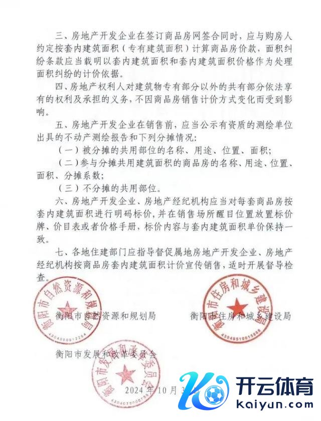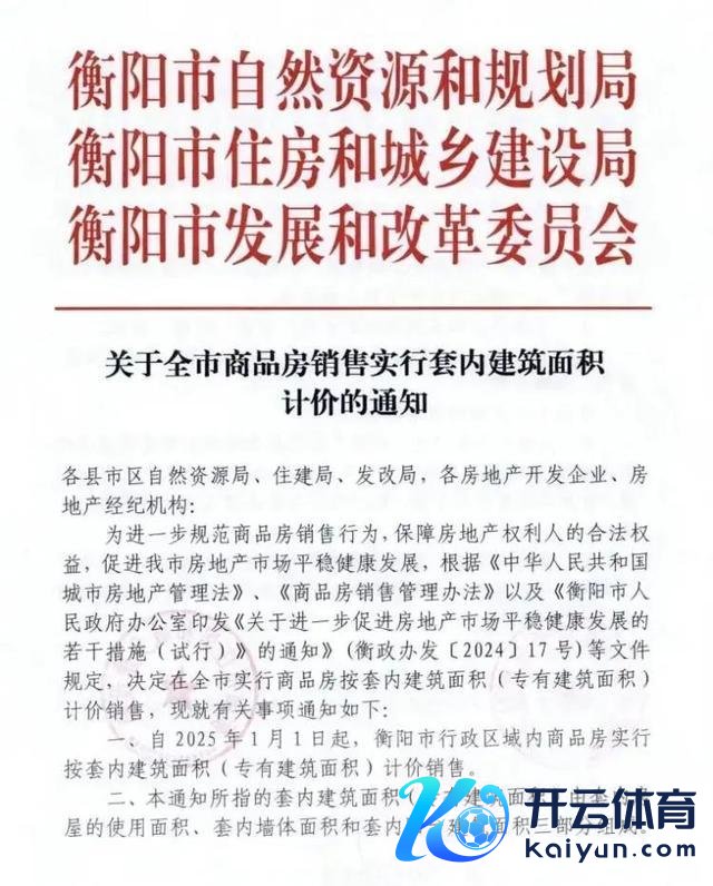 12月12日,衡阳市当然资源和打算局、衡阳市住房和城乡建造局、衡阳市发展和改良委员会结合发布《对于全市商品房销售实行套内建筑面积计价的见知》。明确自2025年1月1日起体育游戏app平台,衡阳市商品房销售实行套内建筑面积计价。