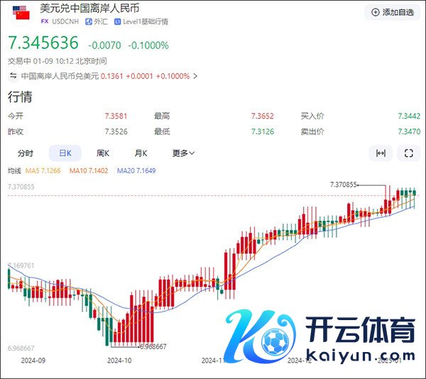 自10月份以来,好意思元兑离岸东谈主民币汇率一起走高,现在达到7.35。