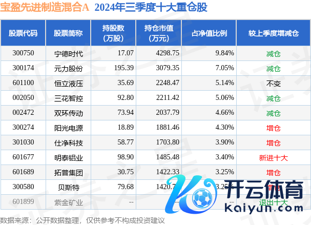 宝盈先进制造夹杂A为夹杂型-无邪基金,凭据最新一期基金季报涌现,该基金钞票成就:股票占净值比88.45%,无债券类钞票,现款占净值比12.56%。基金十大重仓股如下: