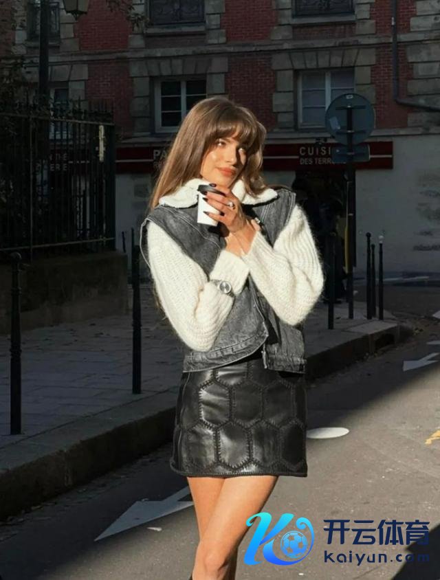 衬衫则起到"腰线"作用更显腿长。