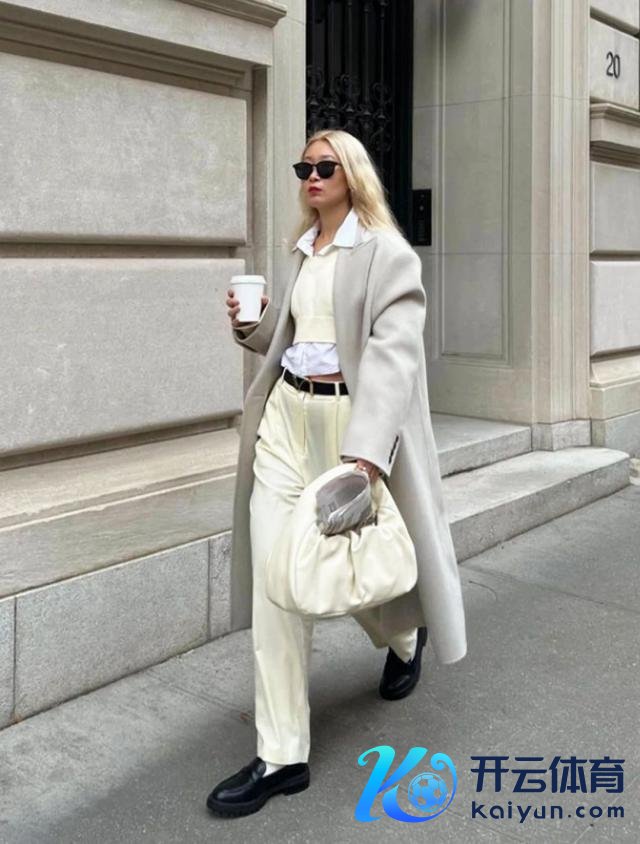 下装跟衬衫同色更显纤细,