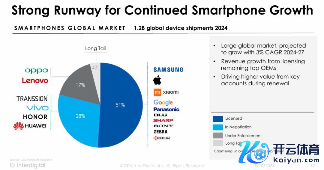 现在来看,InterDigital要念念在2030年辨别专利许可年度营收10亿好意思元的标的,改日几年,例必要加大在中国的许可鼓动力度,现在中国主流手机厂商中,只消小米和OPPO加入了,与联念念的纠纷还在进行之中,其余的传音、vivo、荣耀和华为还在说念判之中。