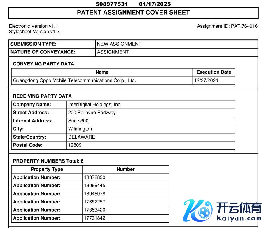 好意思国专利商标局(USPTO)公布了OPPO向InterDigital转让专利的信息,这次转让发生在2024年12月27日,主要触及六个好意思国专利。