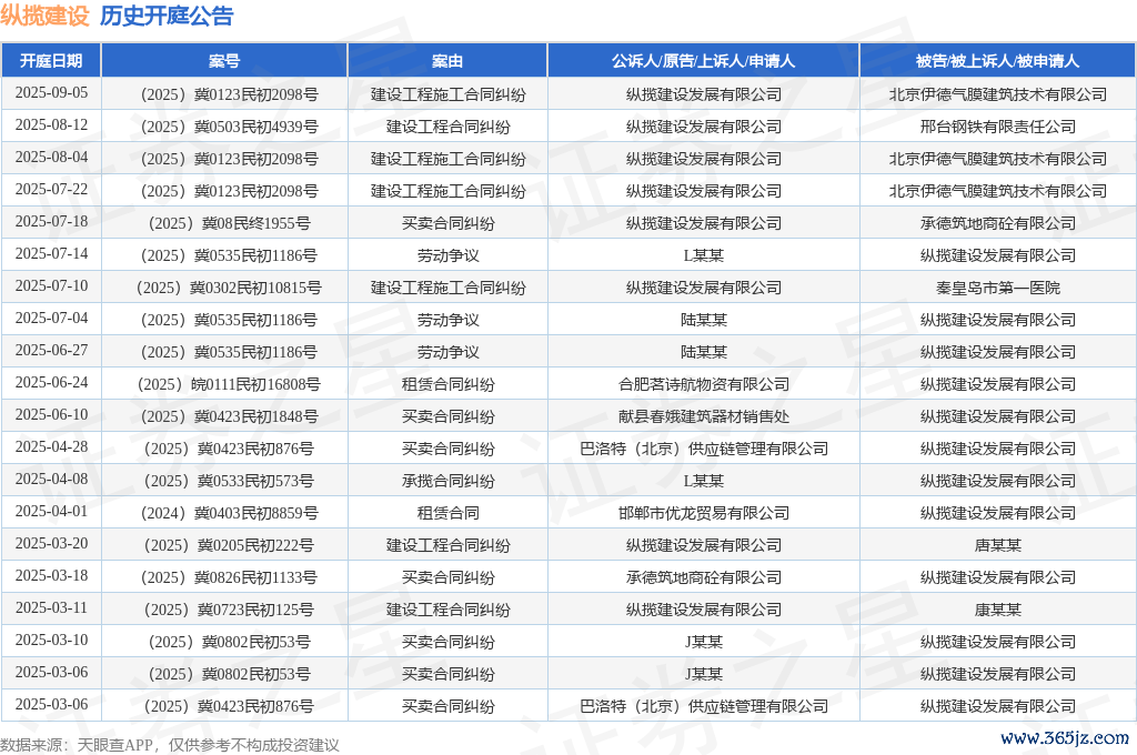 笔据统计,近一年内以纵揽诞生发展有限公司为当事东说念主的历史开庭公告有28则,其中案由为“交易协议纠纷”的公告以12则居首,其次为“诞生工程施工协议纠纷”有4则,“就业争议”有3则。历史开庭公告(前20条)如下: