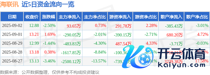 9月2日的资金流向数据方面,主力资金净流入93.65万元,占总成交额0.73%,游资资金净流入291.78万元,占总成交额2.28%,散户资金净流出385.43万元,占总成交额3.01%。