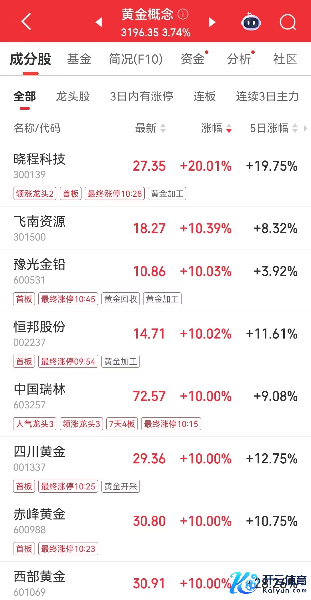 A股阛阓上,黄金主意握续走强,鸿沟9月9日发稿,晓程科技20%涨停,西部黄金、恒邦股份等10%涨停。
